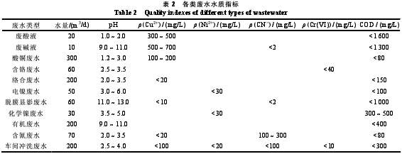 按污染物的性質不同,适度、合理地将生産廢水分流爲11類廢水,各類水的水質指标如表2所示。